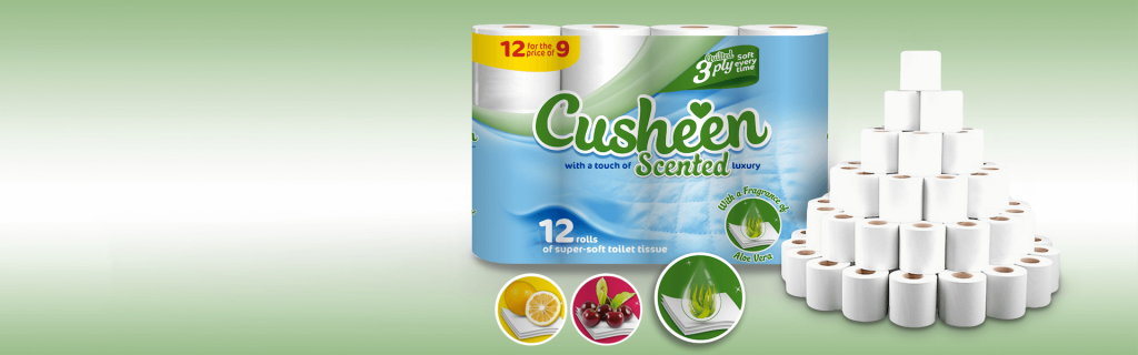 Our Cusheen toilet tissue range offers a luxury 3 ply product in a variety of scents including Aloe Vera, Cherry, Lemon, Apple and Lavender.